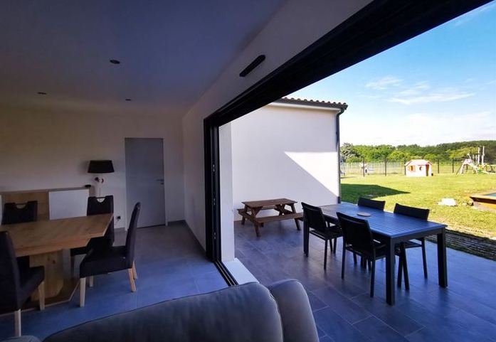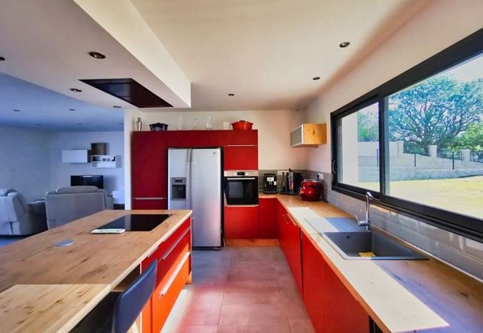 Come and discover this beautiful new house comprising an entrance with cupboard, a living room with fitted kitchen and central island, a master bedroom with dressing room, shower room with toilet. Next to the entrance, an independent toilet, a corridor leading to 3 bedrooms with cupboard and a bathroom.