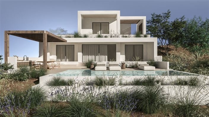 The Ionian coastline might be one of Greece's best kept secrets. Endless sandy beaches, beautiful nature, small villages, the lively towns of Parga and Preveza, and of course spectacular sunsets over the Ionian Sea. Kastrosykia is one of these villages along the Ionian Coast, nestled like a fortress (Kastro is the Greek word for castle) on a plateau at 120 meters above sea level and just 800 meters from the sea. Panoramic views to the sea, the sunset and the 16km long sandy beach of the region - from almost any angle, from any spot. The best place for slow, laid-back summer living while you enjoy this majestic scenery. At the edge of this village you will find the Kastro Sunset Villas, a small-scale project that consists of a total of 4 villas amidst the olive groves.