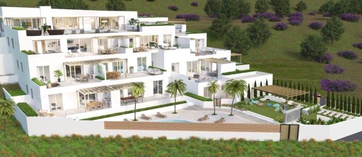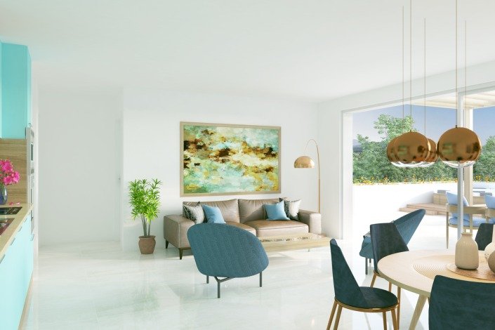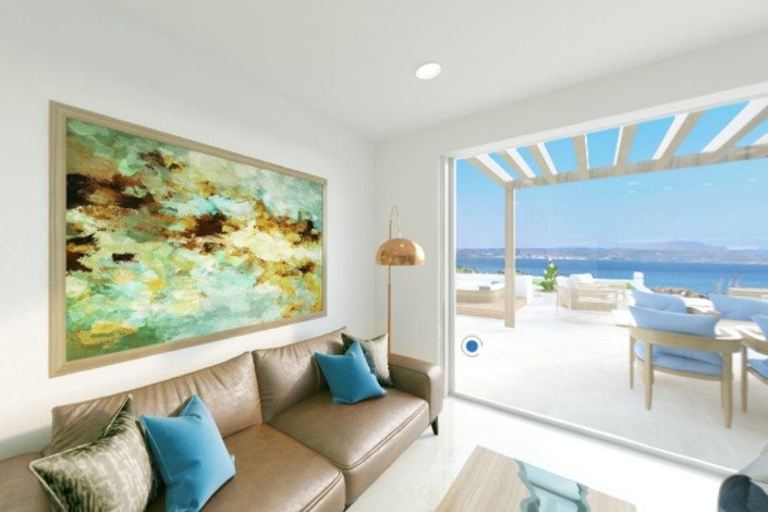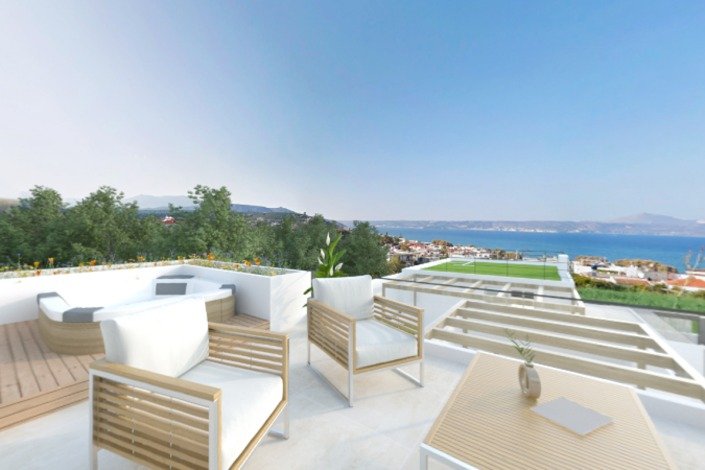 Entering the main living area, you find an open plan living and dining area with fully fitted kitchen with Siemens electric appliances. The master bedroom offers a wardrobe and an en-suite bathroom and has direct access to the terrace with your own Jacuzzi.