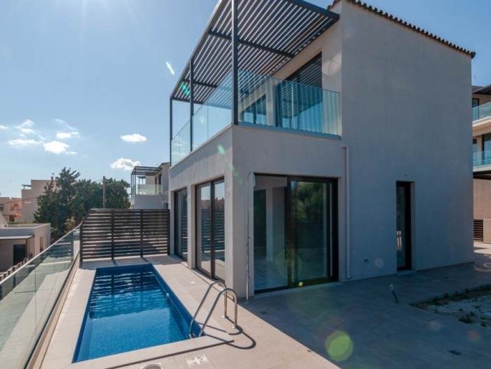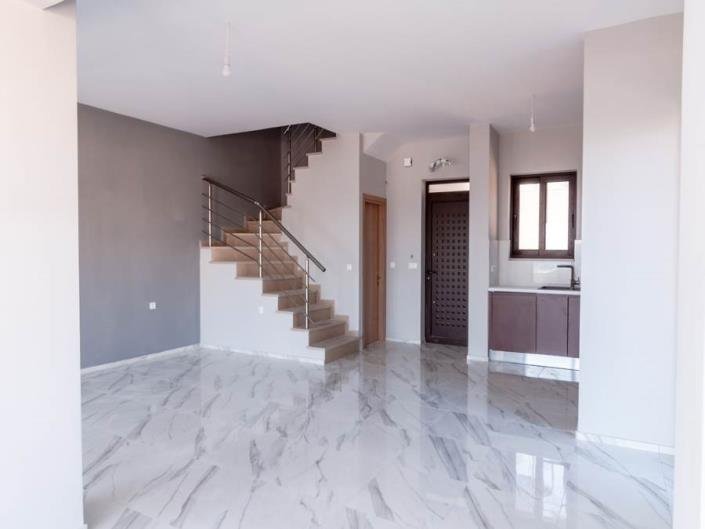 Part of a beautiful new complex that is built on an amphitheatrical plot at the outskirts of the village of Kalyves, this two-floor, 112,62 sq m semi-detached residence offers superb views of the seaside that lies almost at arm’s reach from the complex.