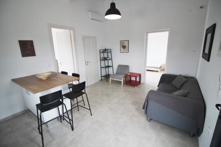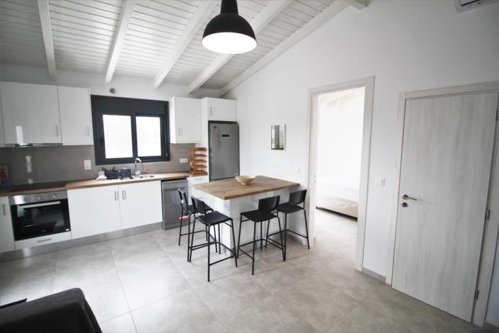 Walking through the main door there is an open plan kitchen and living room with breakfast and dining bar. Fully equipped kitchen with dishwasher and washing machine built-in.