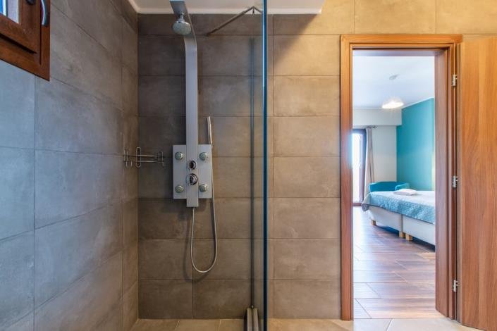 This new-built villa offering a private pool and amazing sea views was completed in the middle of August 2019. Great for families, couples and friends! As you step though the entrance, you will find an expansive and welcoming open-plan space including the living room & dining room with its high ceilings and stunning views to the pool and the sea. There is a dining table seating 8, spacious and comfortable sofas, a flat screen TV and a fire place. On your right, there is a large modern kitchen with all the latest culinary equipment and amenities you could ever need. A storage room and 1 of the villa’s 4 bedrooms can also be found on the 1st floor.