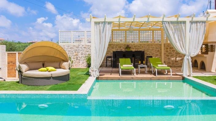 Features: Sunbathing Area; Swimming Pool; Balcony with sea view; Grass lawns; Outdoor BBQ; Mountain View.