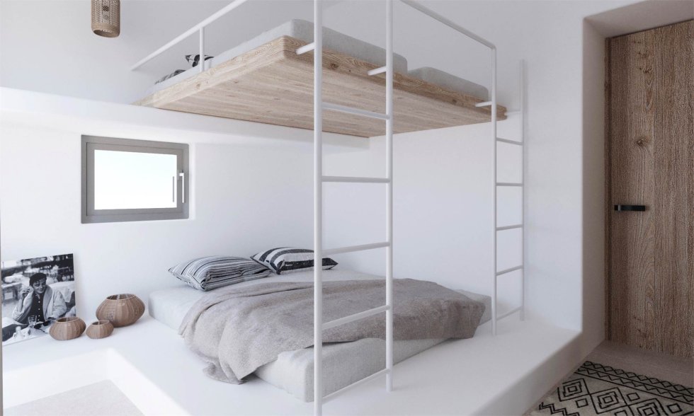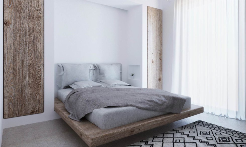 The Design follows a modern inspiration of Cycladic Style, a mixture of natural stones and white washed walls.