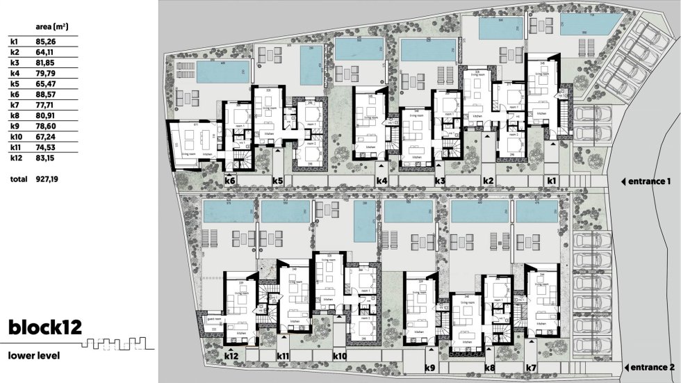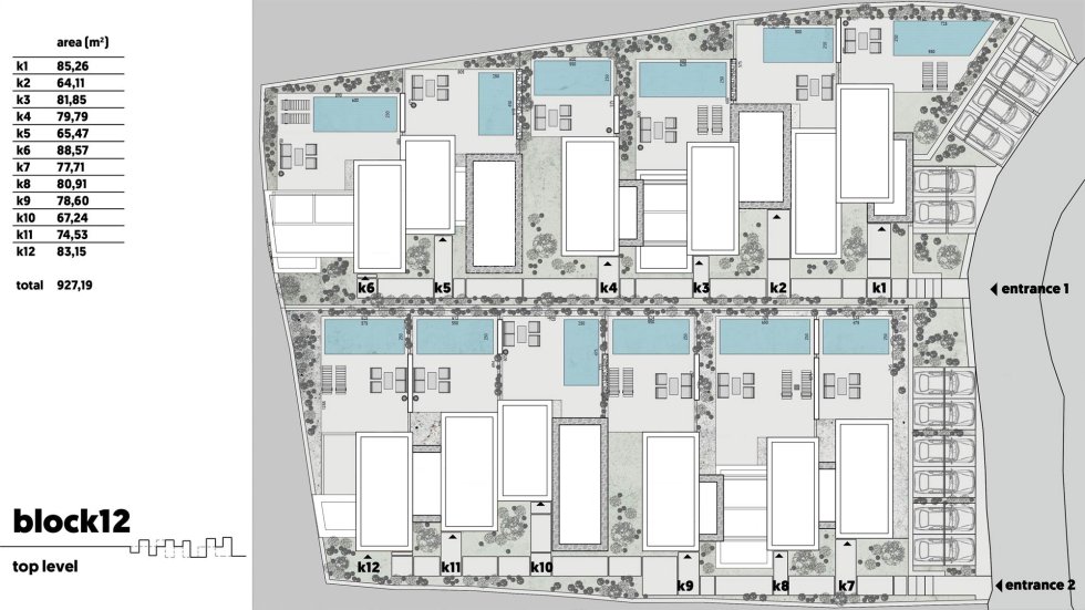 K2: sqm. 63,29 – pool sqm - 12,15 – 2 bedrooms – SOLD;