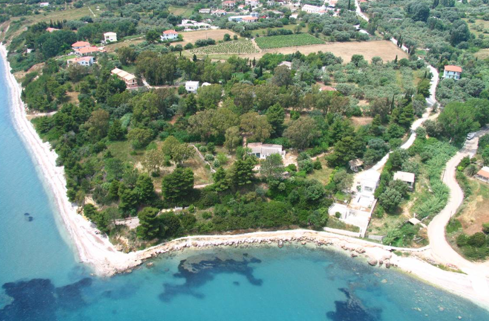- Pogonia Beach: Directly in front
