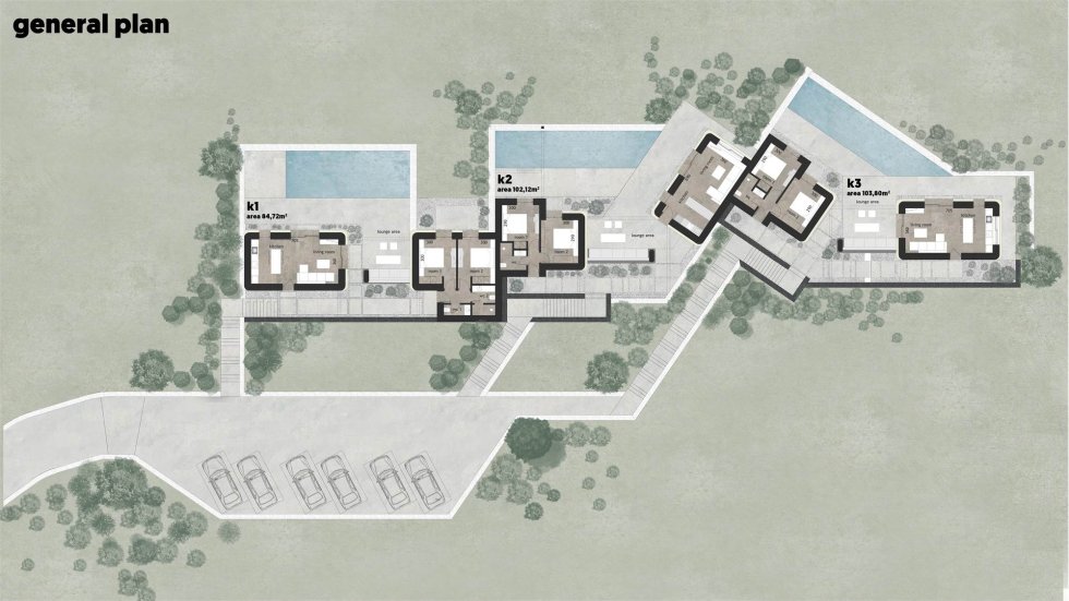 Each house has large garden where outdoor seating, BBQ and swimming pools will be constructed. They also have private outdoor parking area.