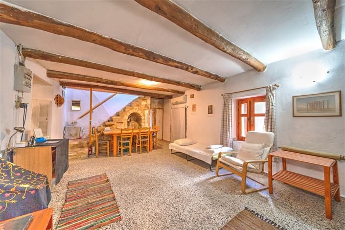 Spread over two floors, this authentic Greek home offers options to relax and entertain. It consists of a traditional living-dining room with a wood burner, two bedrooms, and one bathroom. The ground floor consists of the main reception area which connects to the fully-equipped kitchen, with the first bedroom in the back.