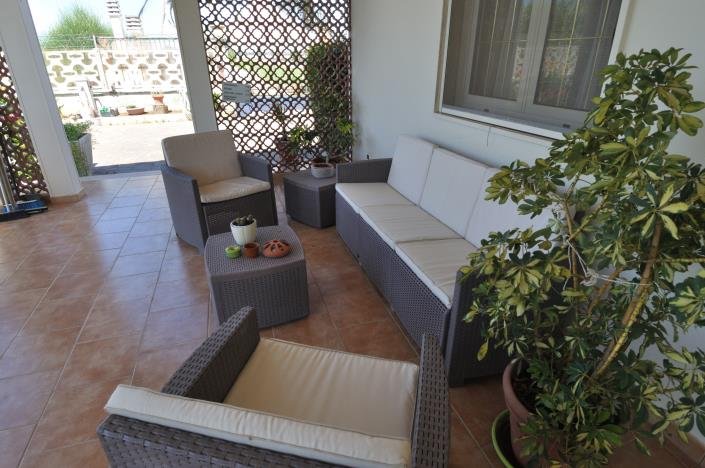 You can enter it through a wide veranda which leads to the living room with access to the corridor in the entrance, from the same one we enter in the kitchen to the three bedrooms, and to the two bathrooms, a bathroom has the shower and the other one with a bathtub. Through the stairs, you can enter the cellar in the basement, which is used as a kitchen-dining room.