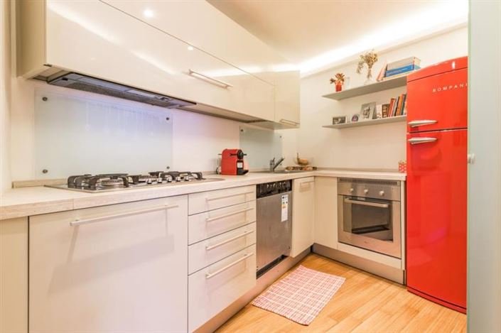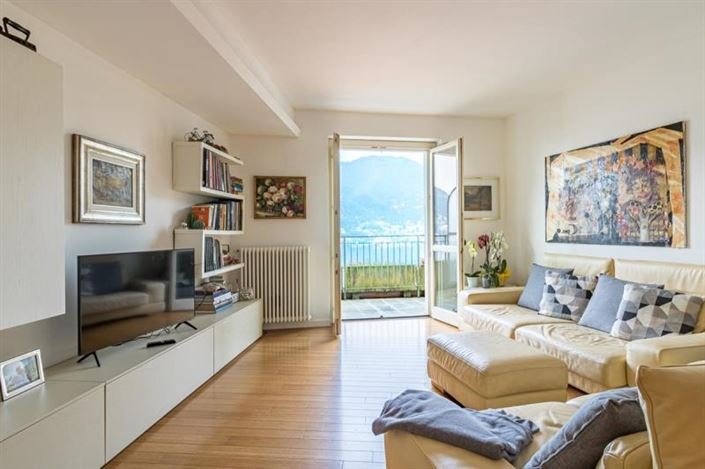 The flat in Blevio with terrace and lake view is in an exclusive position. On the branch of the lake which goes from Como to Bellagio, the property is inside a modern contest of few units. At the entrance, there is a spacious living area with access to the panoramic terrace.