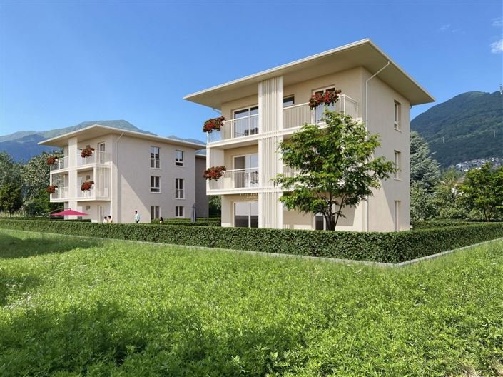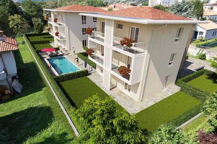 Apartment n. B5 - Apartment of 77 sqm (81 sqm commercial) on the second floor comprising entrance hall, living room / kitchen, two bedrooms, hallway, and two bathrooms. Covered terrace of over 7 square meters as per map. Garage. € 340.000,00 - Nice Lake view!