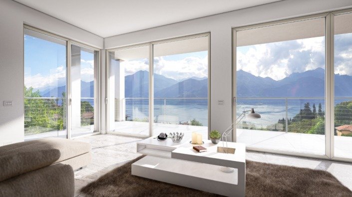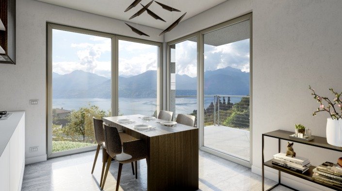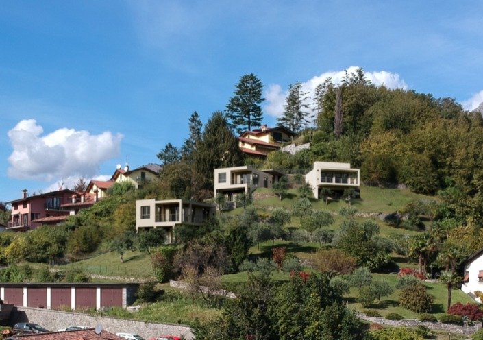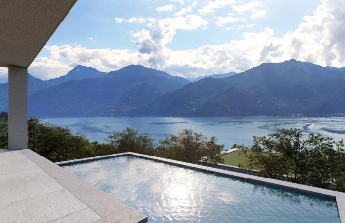 These brand new villas with an infinity pool comprehend different solutions: two villas feature an entrance on the ground floor, a spacious living room, two bedrooms, and a bathroom together with an ample balcony. On the semi-underground floor, other two bedrooms, one bathroom and a porch to enjoy the unique view.