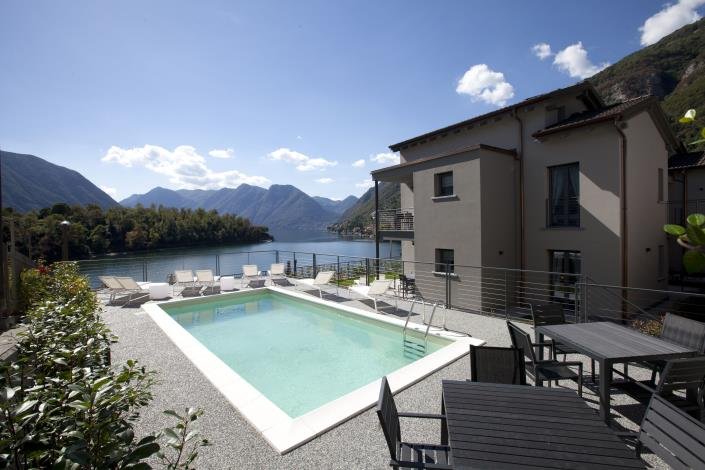 The modern apartment is located in a residence with a swimming pool recently built in Tremezzina, it is very accurate in detail, the finishes are first choice and it is sold fully furnished to measure.