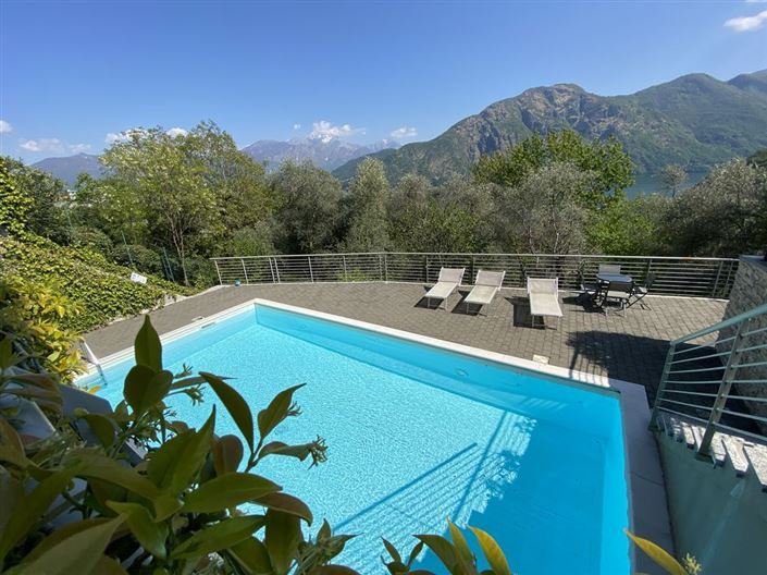 The apartment forms part of a recently built residence with a swimming pool and solarium, and also benefits from private parking and has superb views over the lake and the mountains beyond.