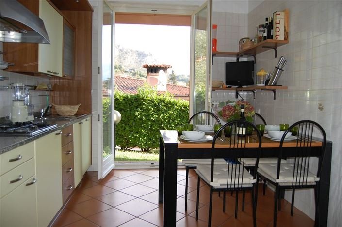 A separate kitchen also has external access to the garden. The property has 3 bedrooms, two of which are double bedrooms and the third smaller one which has access to the garden and 2 bathrooms. There is a basement which contains a wide taverna, a further bathroom, laundry room, and a garage.