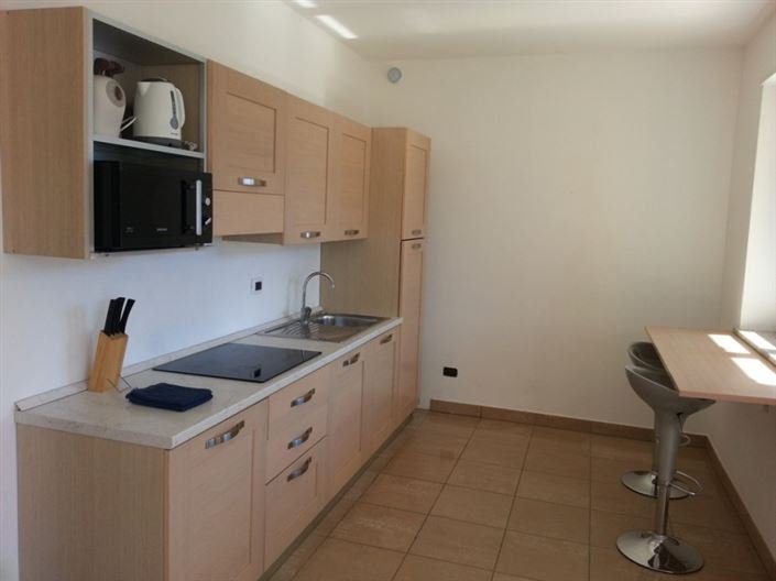 The apartment is fully furnished in a modern style, provides approximately 80 m2 of accommodation, and comprises the following: an entrance hall, a bathroom, and a living room with a kitchenette opening onto a terrace and overlooking the lake. There is a double bedroom with a balcony that overlooks the lake, a second bedroom with 2 single beds, and a bathroom with a shower cubicle and a bathtub.