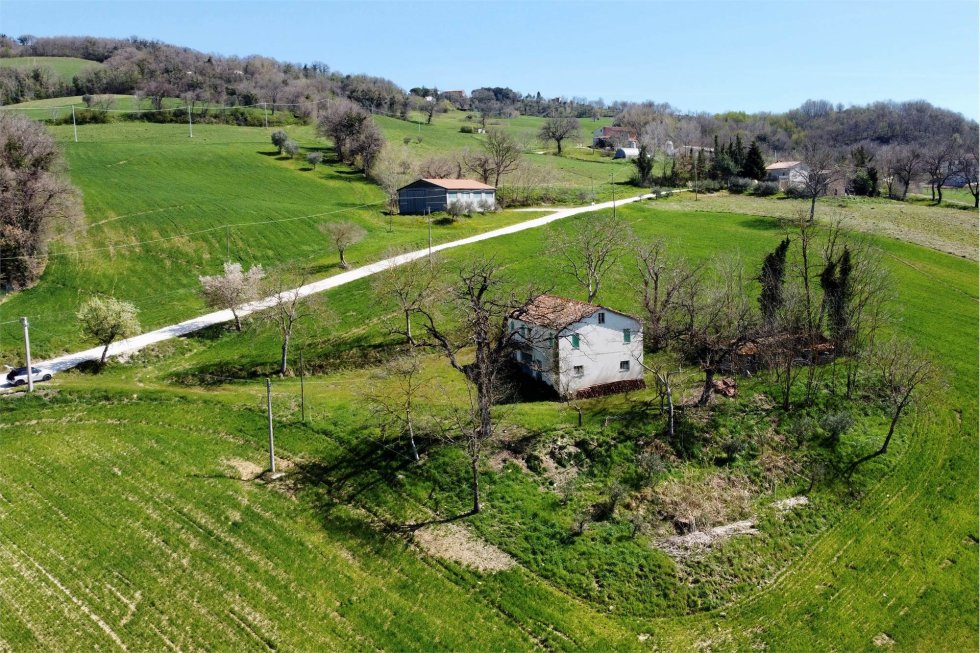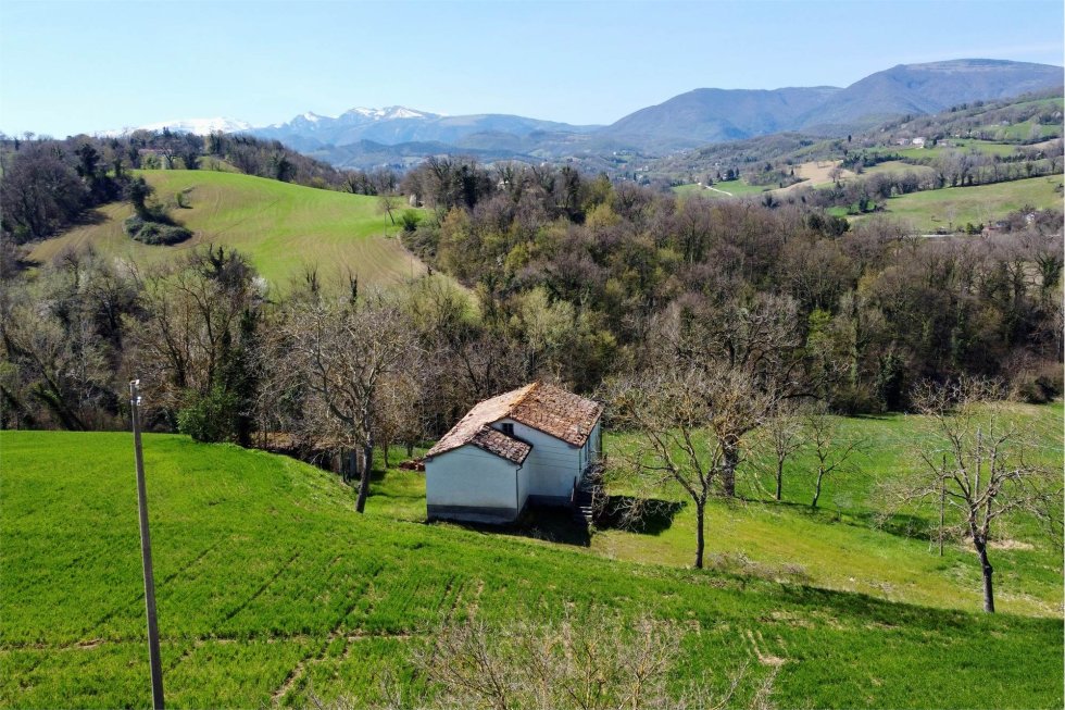 In the Municipality of Camporotondo di Fiastrone, a typical Marche farmhouse of approx. 240 (conventional), located on the hill that slopes west towards the Sibillini mountains, within its tree-lined courtyard and upstream of the Bragagnone stream, giving the place the most typical of the Marche hills.