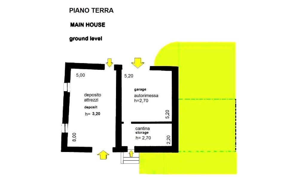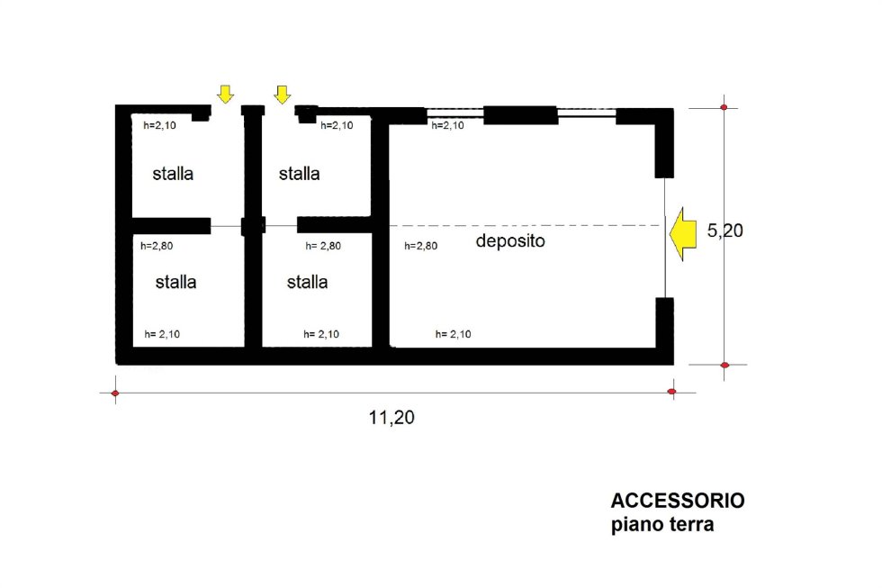 On the courtyard of approx. 3.000 there is an ancillary structure that develops on a single floor above ground, consisting of a large warehouse and an old pigsty in a poor state of maintenance, but important for the construction of any additional secondary accommodation.