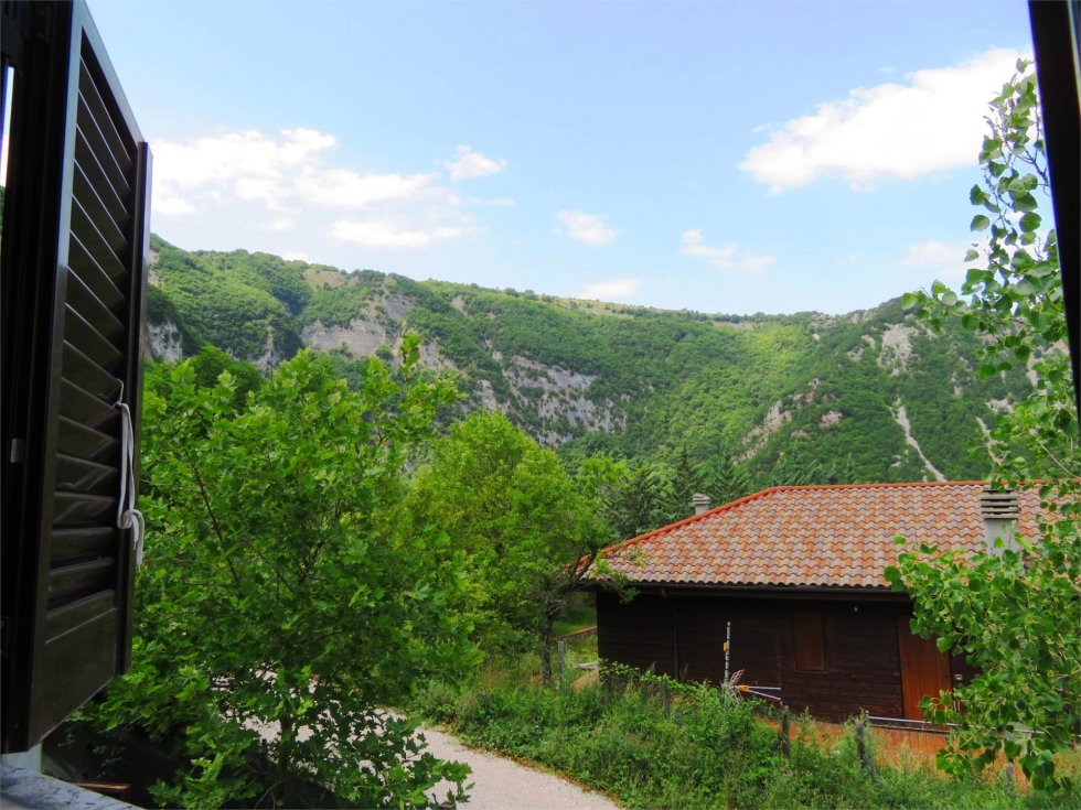 The two houses are mirrored and have access to : ground floor in the living room with kitchen and access to the pantry and the garage, on the intermediate floor a first bedroom with bathroom, while on the attic floor an environment with exposed wooden ceilings and access to the terrace. (currently glazed) overlooking the valley, and finally you access the ceiling (currently bedroom) through a small iron staircase.