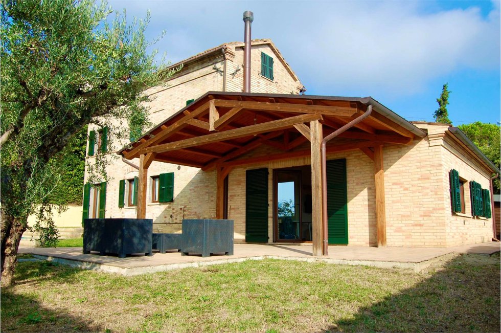In the Municipality of Loro Piceno, a few steps from the road that connects the historic center of the town to that of Mogliano, For sale a brick farmhouse on three floors for a total sqm. 170 (conventional) with swimming pool and exclusive courtyard of approx. sqm. 600.