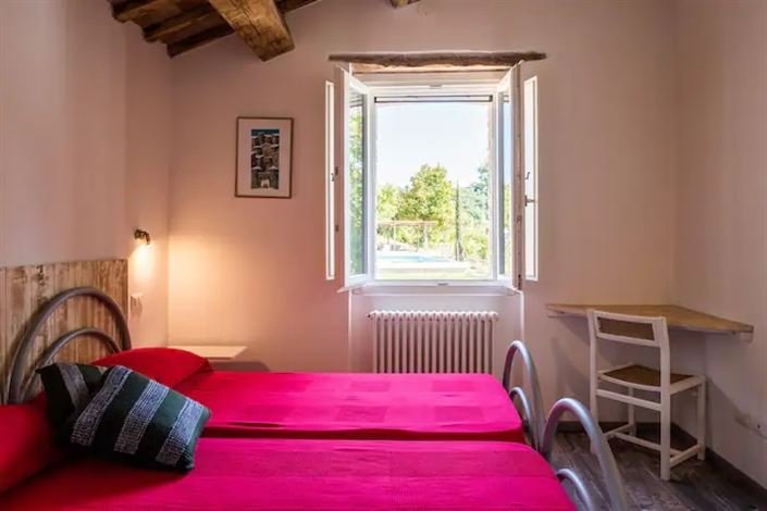 The house provides about 135m2 of accommodation over 2 floors with the entrance across a covered loggia with ample room to dine externally. To the right of the entrance hall, there is a dining room, kitchen, and toilet. To the left, there is a lounge area with doors leading to a further covered veranda and the master bedroom which also has double doors leading to the veranda and en-suite bathroom. Stairs lead to the first-floor landing where you find two large bedrooms and a bathroom. Each of the bedrooms benefits from individual air conditioning, and there is a heat pump for hot water and a pellet stove for heating with radiators.