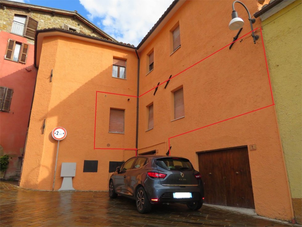 Close to the southern walls of the historic center of Camporotondo di Fiastrone, for sale an apartment of approx. 80 (conventional) located on the first floor without lift with warehouses of approx. 21 (conventional) and access to the garden sqm. 40 sites on the ground floor.