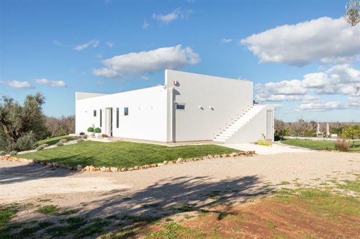 The Villa with Swimming Pool is located on a land of 13,000 square meters, fully fenced, and characterized by the presence of olive trees, fruit trees such as lemon and Mandarin, palm trees, succulents, and various other types of plants and flowers. The Villa has a covered area of 130 square meters and consists of a large and bright Open Space Living Room with a Kitchen and dining area, 3 double Bedrooms, one with an en-suite Bathroom, 1 Bathroom, and a closet.