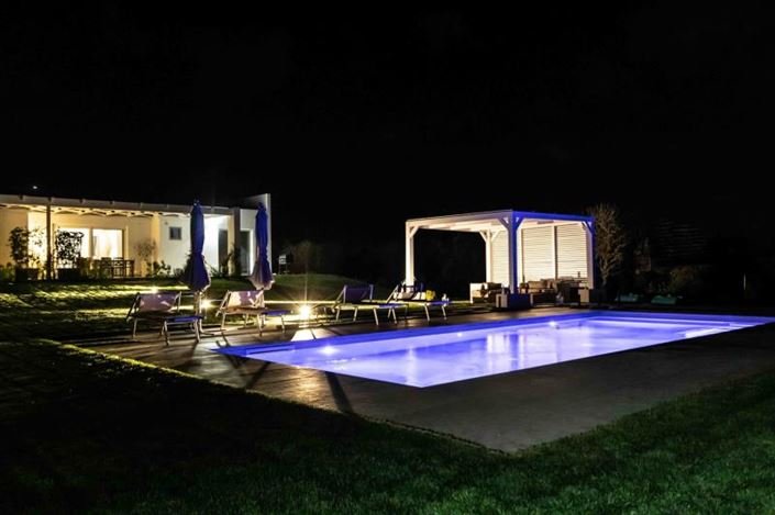 Leaving the living room, you find yourself under the shade of a pergola of 30 square meters, from which a small path on the green lawn surrounding the house, leads to the pool of 40 square meters, with a wooden gazebo. Ideal for relaxing in the sun or shade during the summer but also throughout the year, since in winter, the temperatures in Salento are mild and pleasant.
