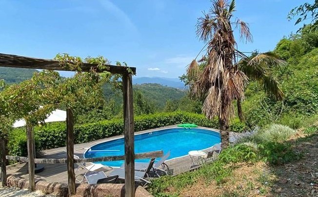 Magnificent villa with 5/6 bedrooms and with land and a swimming pool, set in a very private location in the hills of the Lunigiana area of Tuscany.