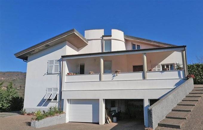 An apartment with a kitchen, bedroom, and bathroom with bath on the ground floor; An apartment with a kitchen, bedroom, and bathroom with bath on the ground floor; 3 garages on the ground floor; a Large covered terrace with panoramic views, living room with dining area, kitchen, hallway, 3 bedrooms, study, 2 bathrooms one of which with bath, and the other one with shower and small store room on the first floor; Hall, 2 bedrooms, bathroom with shower, attic area and terrace on the second floor from which it is possible to reach the flat roof with wide opening views.