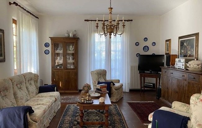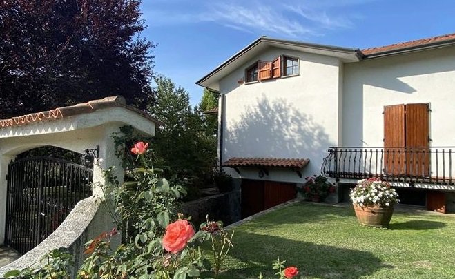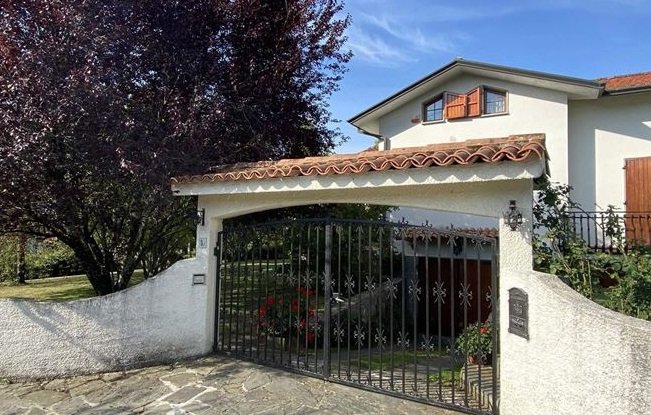 The villa is approached on a quiet lane to a gated private entrance. It is on three levels and surrounded by an enclosed garden with bright living accommodations on the ground floor and bedrooms on the first and second floors. The welcoming entrance hall leads to the light and airy living room through a Tuscan arch to the left, with two double doors out to a shady loggia with a vista to the garden. To the right is a well-fitted kitchen. Upstairs are two large double bedrooms, where the master bedroom has double doors to a balcony and there is also a bathroom, and upstairs to the loft area are two further bedrooms and another bathroom. Stairs from the kitchen lead down to the 'taverna' which could easily be a self-contained flat. Currently, there is a good kitchen, dining area, living room with a log fire, a utility room with plumbing for a washing machine, and there is a bathroom. There is also a garage. The villa is surrounded by approximately 500 sqm of flat land laid to lawn, with trees and shrubs where a swimming pool could be installed subject to planning permission.