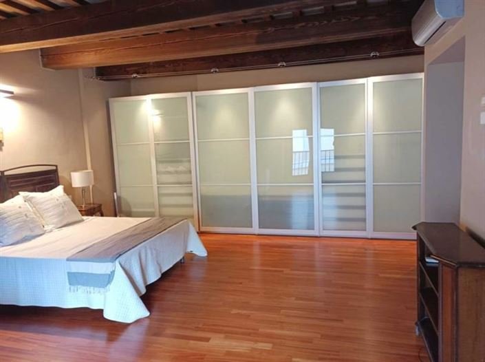 The private zone offers a master bedroom with a full en-suite bathroom, plus two additional double bedrooms and another full bath. There is also an upper-level studio, with access to a private roof terrace boasting spectacular views of the medieval city.