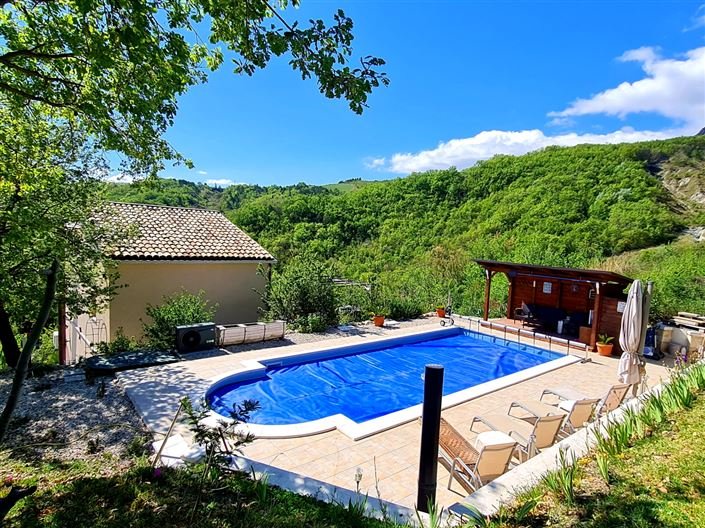 Features: Central Heating; Close to local towns and villages; Close to sea and ski; Close to tourist attractions; Distant sea views; Fireplace; Panoramic views; Stone built; Swimming Pool.