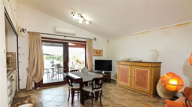 The property provides about 80 m2 of accommodation over 1 floor and comprises an open plan living room with kitchenette and direct exit to the large covered wooden veranda and a stone paved courtyard, perfect for dining “al fresco”, 1 double bedroom with exit to the backyard, 1 single bedroom, and 1 large bathroom.