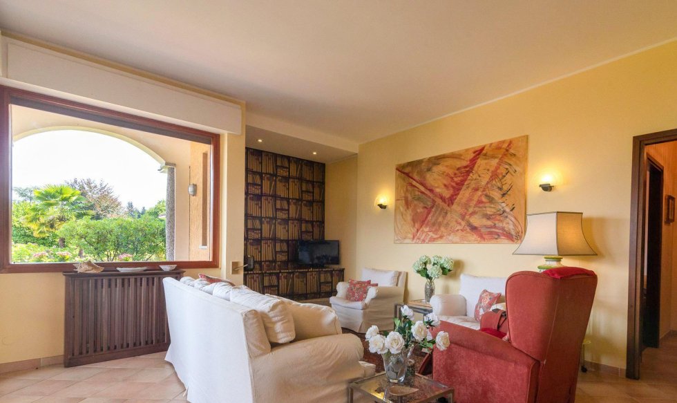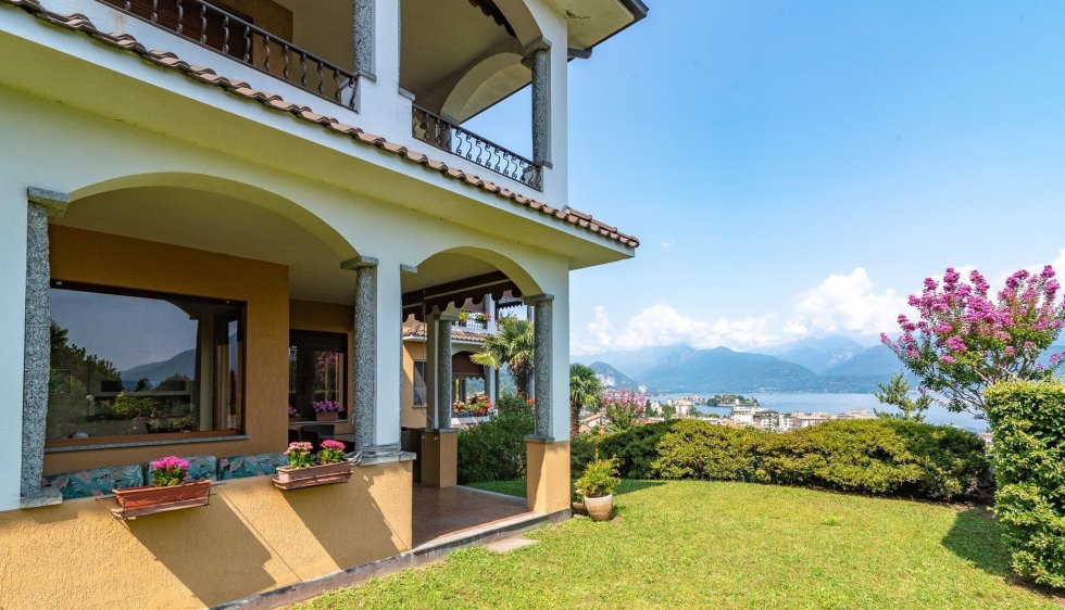 Located on the first hill of Stresa, in the locality of Binda, an elegant three-room apartment overlooking Lake Maggiore. The apartment is located on the mezzanine floor of a residential complex.