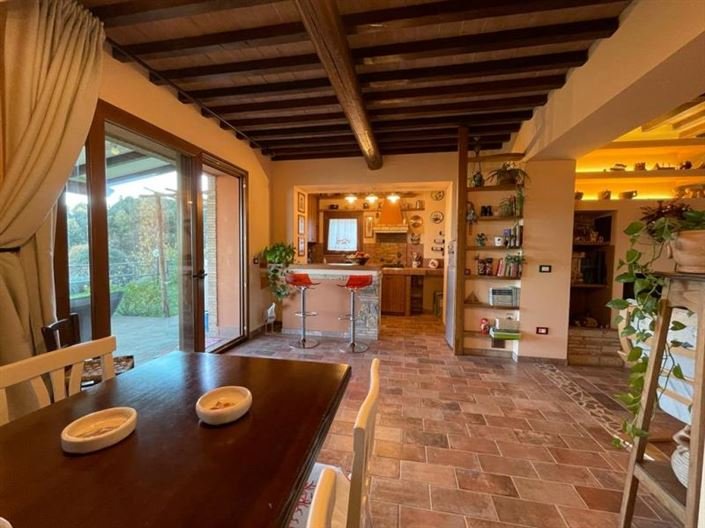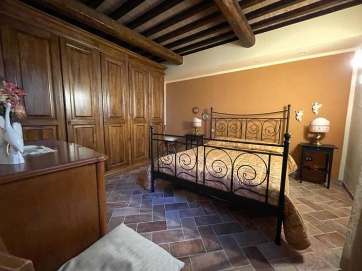 Inside there’s a dining room, kitchenette, living room with fireplace, very traditional finishings everywhere like ceiling with beams and cotto floors. Bathroom with shower and one bedroom.