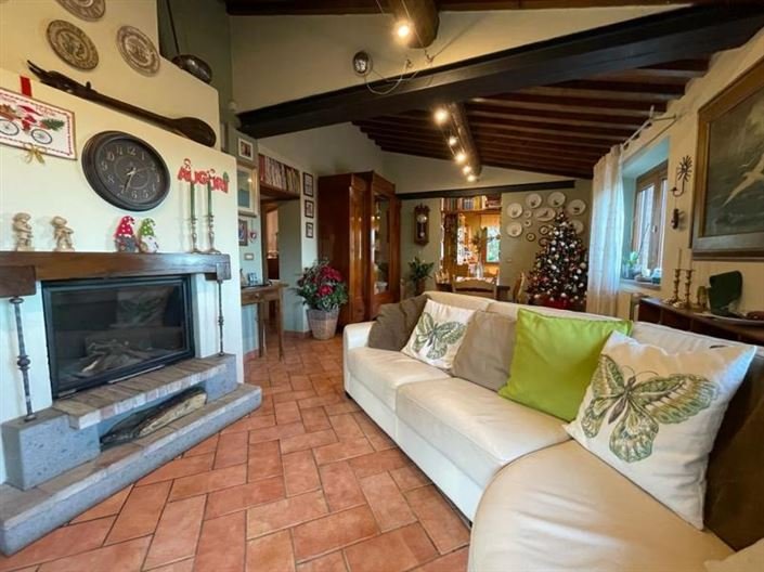 On the first floor, through an external staircase, you reach the other unit, which is where the owners are currently living. Living room with fireplace, kitchen, 2 bedrooms, and a bathroom.