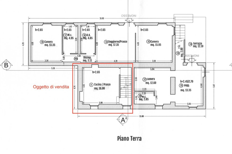 Kitchen with fireplace sqm. 16.00 (first floor);
