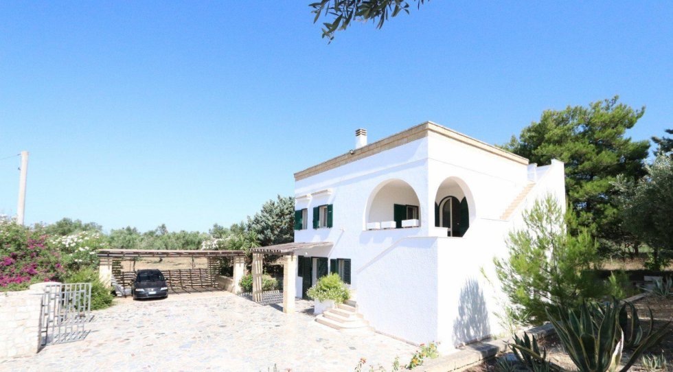 A sea view villa located in the hills, with panoramic views of the beach of Pescoluse. The property is located in a garden of 1,800 square meters, a part of which is embellished by centuries-old olive trees, ornamental plants, flowers, mastic, oleander, pines, and cypresses. The presence of these trees allows you to have shade in various areas of the garden.