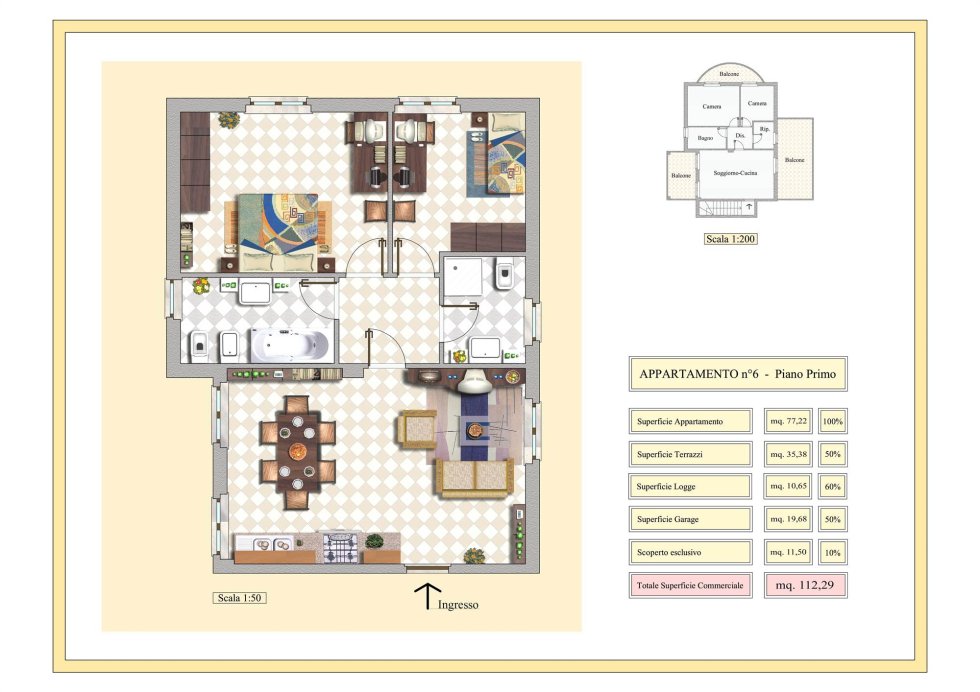 APARTMENT N.6 of 112 square meters (commercial) offered for sale at €. 123,200.00;