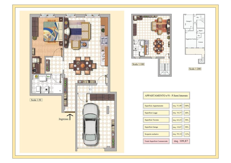 APARTMENT N.8 of 110 square meters (commercial) offered for sale at €. 121,000.00;