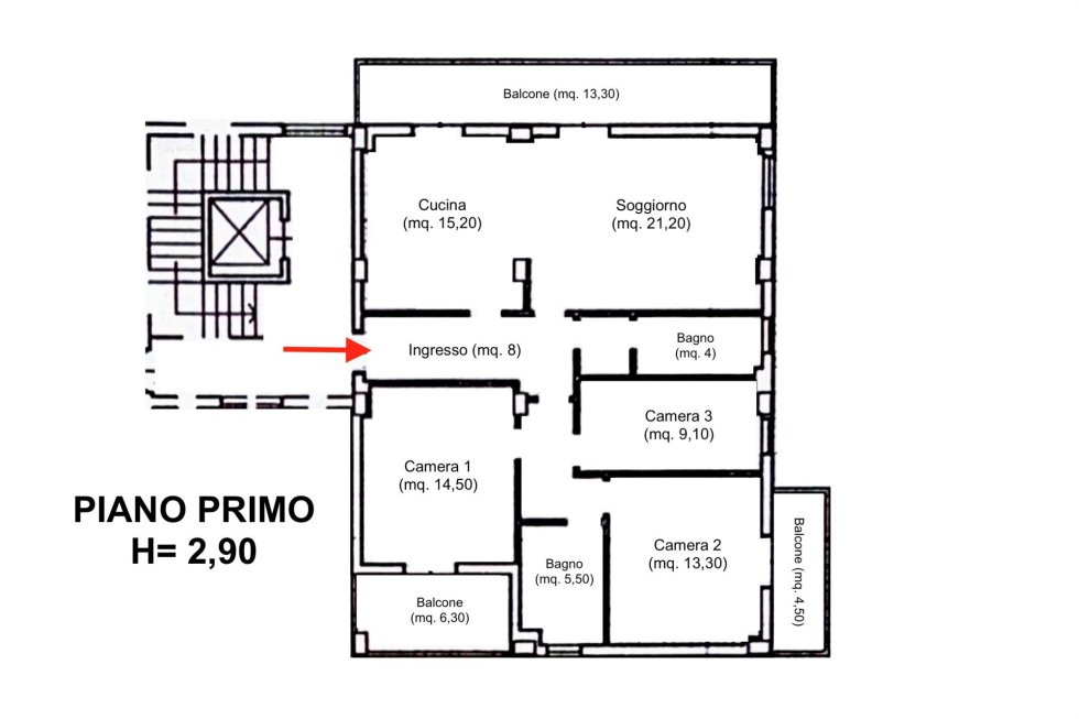 Room 2 sqm. 13.30 with balcony sqm. 4.50;