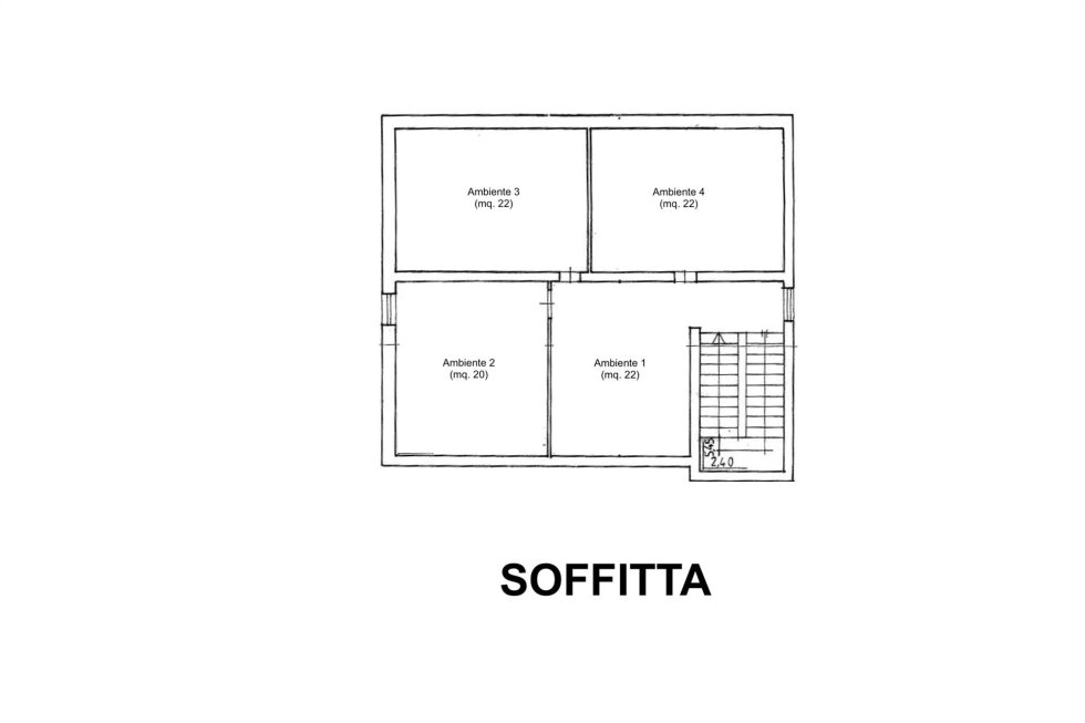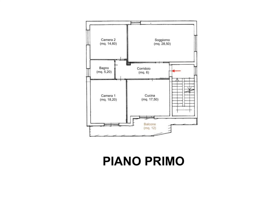 Kitchen with fireplace sqm. 17.50 and balcony sqm. 12.00;