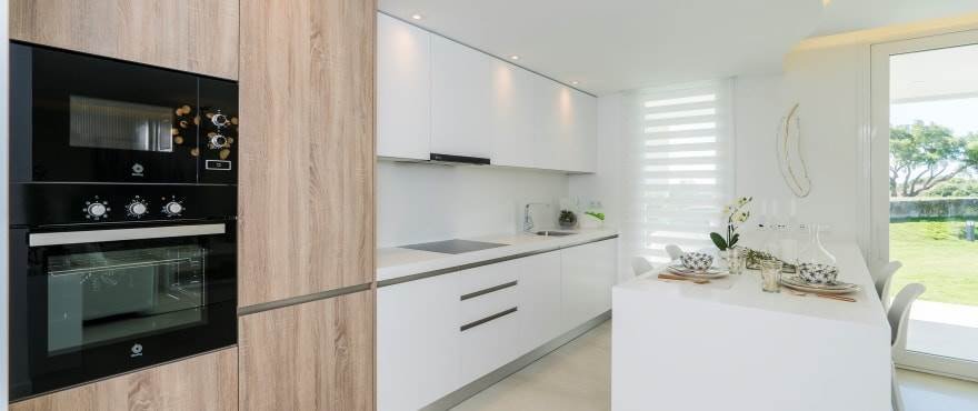 The interior of the homes is based on the “open plan” and “total living” concepts, giving priority to a spacious living room which leads to a large open terrace, both fully integrated into the surrounding corn oak meadows and making the most of the predominantly southern aspect and the views of the golf course and the sea.