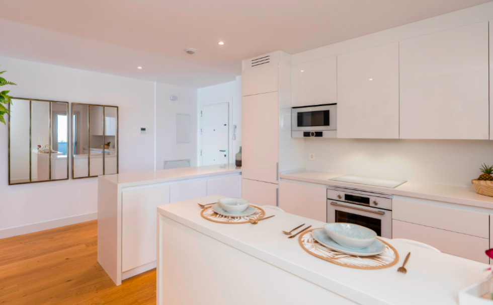 With a 24 hour camera security around the common spaces and an armoured entrance door for every property, safety will not be an issue to worry about. The apartments are delivered with a fully fitted and equipped kitchen, hot & cold AC and floor heating.