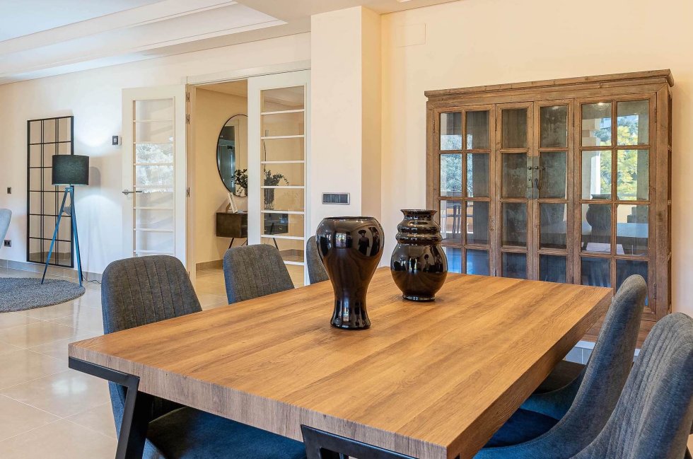 Grand entrance hall with beautiful quality Porcelanosa tiles throughout, to the left opens out to the astounding living and dining area, tastefully decorated with all mod-cons yet so homely. Sliding doors lead out to the superb terraces which extend the width of the apartment to the master bedroom and enjoy the gorgeous views!