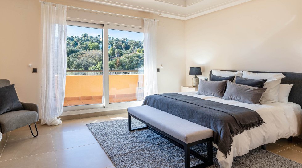 The Master bedroom is a real "wow" in size and finish, looking out to the wonderful views, huge terrace and boasts an en-suite bathroom with dual sinks, luxury jacuzzi bath and a walk-in shower. The build quality is superb!