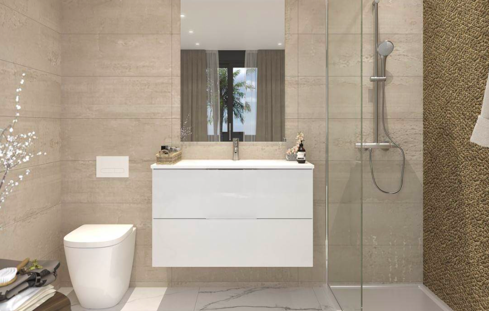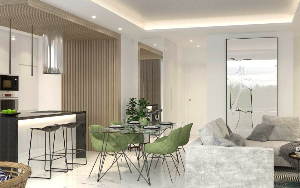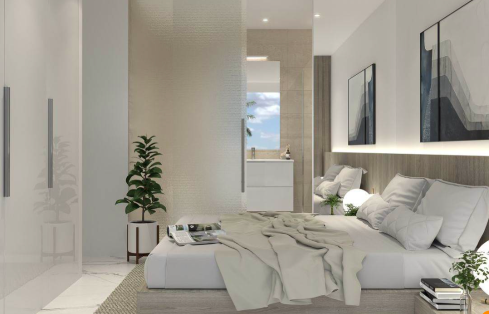 This development consists of maisonettes with two bedrooms and two bathrooms with either ground floors with gardens or top floor with rooftop solariums. Each property is spacious and bright and includes PVC windows with electric shutters, security doors, pre-installation of air conditioning through ducts, kitchen furniture, and appliances as well as bathrooms complete with furniture, shower screen, and under floor heating.
