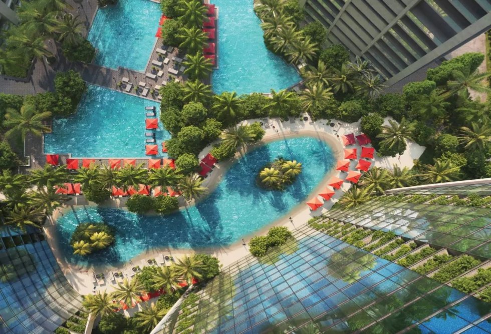 The Towers also enjoys various extravagant amenities for its residents to use such as, a man-made private beach that throws waves, and a tropical garden on the rooftop with rare birds.