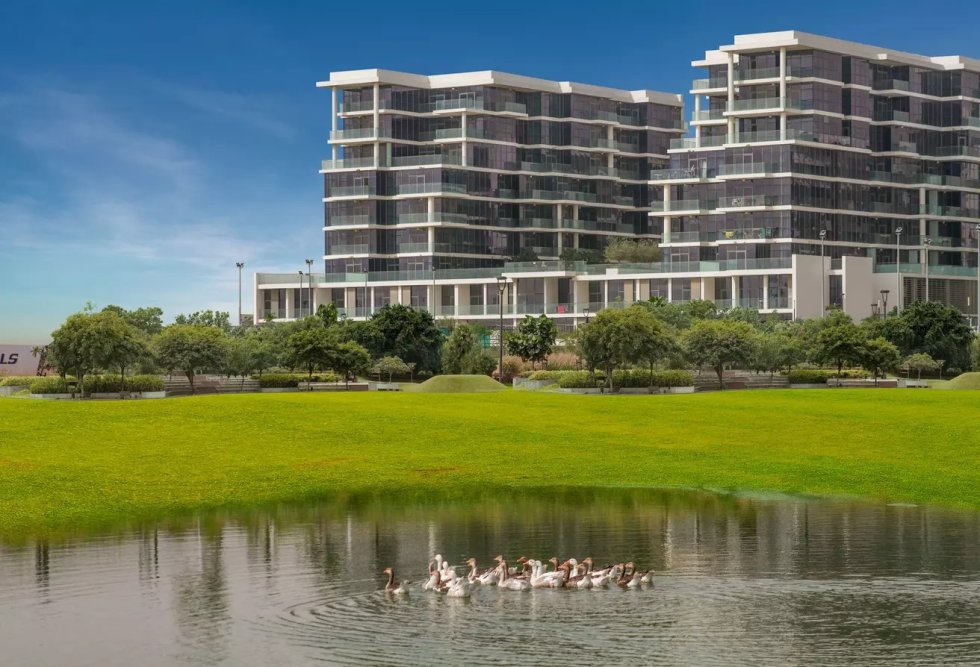 A cluster of contemporary low-rise apartments set around the greens of the Trump International Golf Club Dubai.